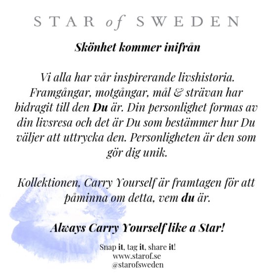 Star of Sweden is a fast-growing Scandinavian design brand of fashion-forward jewelry. Special designed gift boxes with the innovative gift concept Carry Yourself. So, you get something a little bit extra to carry with you. So, the jewelry comes with a designed box and a message to the wearer including a gift note. The note explains the meaning behind the chosen piece; how you Carry yourself.