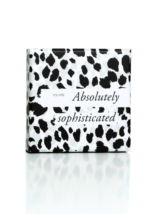 Svart/ vit leopardmönstrad smyckeask med citatet “You are so sophisticated”. Kommer med en vit multi-insättning för ring, halsband, örhängen och armband. En smyckeask att förvara dina smycken i samt gör sig lika bra som inredningsdetalj.